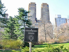 数年前、セントラル・パークにはオーディオ・ガイドとして、主な名所に緑色のボードが設置されました。表示されている番号に電話をかけると、名所を紹介するアナウンスが流れるというしくみ。ストロベリー・フィールズを案内してくれるのは、ジョン・レノンのパートナーだったオノ・ヨーコです。