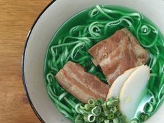 スープが青(レジスタンス)か緑(エンライテンド)か選べる沖縄そばのセット!(写真提供:米八そば)