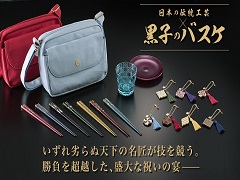 展開されるグッズは、「京都 西陣織ショルダーバッグ(全7種類・税別1万9800 円)」、「箱根寄木細工チャーム(全7種類・税別4980円)」、「秋田 川連塗り本金蒔絵箸(全7種類・税別7980円)」、「江戸切子 黒子グラス(税別1万9800円)」「江戸切子 赤司プレート(税別2万9800円)となっています。