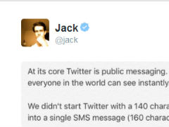 Twitterのジャック・ドーシーCEOはこのニュースの後、自身のTwitterで「Twitterを140文字の制限で始めたわけではない。SMS(160文字)に合わせて早い段階で追加した」とコメント。「これは美しい制約となり、私は気に入っている」としつつも、ユーザーがテキストのスクリーンショットをツイートしていることに触れ、「これが実際のテキストだったら検索でき、ハイライト表示できる。より有用で強力だ」とも語っています。