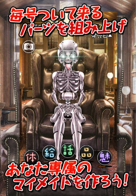 骨格だけの機械人形を、タップしてかわいいメイドさんに育てたり、メイドさんと恋愛するゲーム。成長させたいステータスボタンをタップするだけでメイドさんが育ち、タップしたボタンによって見た目や会話が変化していきます。