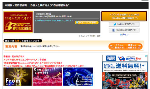 中国版の紅白歌合戦「春節聯歓晩会」(しゅんせつれんかんばんかい)が、ニコニコ生放送で中継されます。2月7日20時から。