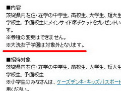 「ガルパン」がクラブに根付いている証拠であり、過去の事例を鑑みて「間違って来てしまわないように」という気づかいとして対象外としたことが分かりました。どうやらウケ狙いだったり、間違いではなく、注意事項として書くことが当然の成り行きだったのですね。ちなみに2015年の大洗の日だった9月27日の「J2第34節 FC岐阜戦」開催のお知らせにはしっかり招待対象に「大洗町に在住、在学の方(大洗女子学園在学中の方も含む)」と記載されています。