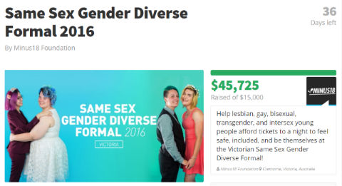 イベントを企画したのは、LGBTの若者を支援するメルボルンの団体Minus 18。4月に21歳の若者向けに、好きな服装で、好きな相手と参加できるスクールフォーマル(プロムのようなもの)を開催するとしてチケットを売り出しました。
