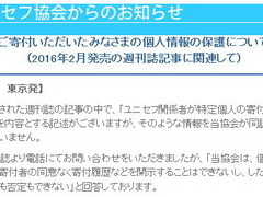 日本ユニセフ協会は3月1日、週刊誌の記事で、「ユニセフ関係者が特定個人の寄付履歴を同誌に開示した」とする内容が事実無根だとWebサイトで発表した。