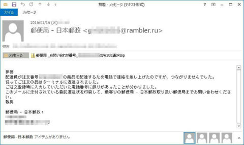 日本郵政を装った不審メール出回る 添付ファイルを開かないよう注意