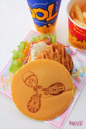 スペシャルセット,トゥーンタウンで楽しめるスペシャルセット(990円)は、特別なマークが付いたパンケーキサンドです