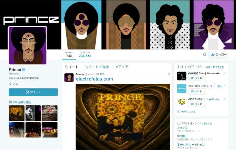 プリンスさんのTwitterアカウント。4月18日まで更新されていた