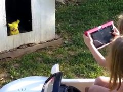 犬も猫もきっと全部メタモン 女の子がお庭でリアル「ポケモンスナップ」で楽しく撮影