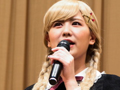 小林さんは佐藤さんのキャッチフレーズをまねして「み〜んなが恋するお人形!」とかわいらしいポーズを披露。まさかの展開に会場には突如として響き渡る黄色い歓声、というか悲鳴に包まる事態に。「アイラブ〜?」に続くファンのレスポンス「ユーラブ!」もバッチリ決まり、「ゆーちゃむでーーす!!!」と元気にあいさつ。