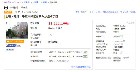 「殺人事件が発生した物件です」という説明書きがついていることで話題になったヤフオク!公売の豪邸関連記事)が落札されました。落札額は1111万1100円。
