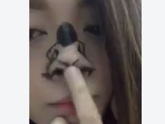 撮影したのはフィリピン人女性のMeg Mallariさん。鼻の先っちょをお尻に見立てて、顔面に女性の後ろ姿を描いてしまいました。そして同楽曲のリズムに合わせて、鼻先を指で上下左右にくいくい動かすと……おおお、絵の女性がお尻を振りまくっているみたい! セクシーさが売りのダンスを鼻でやってみせるユーモアにくすりとしてしまいます。終わり間際にMegさんもつい吹き出してしまう様子がこれまたキュート。