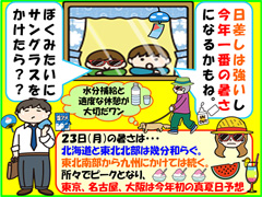 きょう(23日:月曜日)も日本列島はあつ〜い空気に覆われます。九州から東北南部にかけて暑さが続き、きのう(22日:日曜日)よりも気温が高くなる所が多いでしょう。