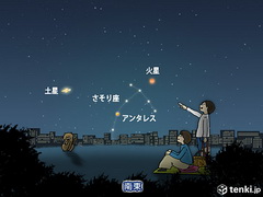 28日(土)の夜は雲がとれて、星空を楽しめる所が多そうです。