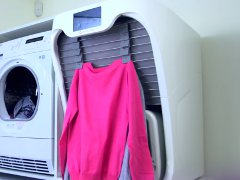 たためる洋服は一般的なシャツやズボン、タオルも可能で、一度に15〜20枚の洋服を取り付けられるとのこと。たたむ時間は1枚につき、しわ取りも含めると30秒ほど。その他、大きさは71×81×79センチと平均的な衣類乾燥機くらいあり、重さも30キロあります。