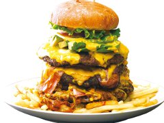 積まれたパテにダブルチーズにベーコンにアボカド……! 高さ20センチ、重さ1.8キロの「ギガモンスターバーガー」が登場