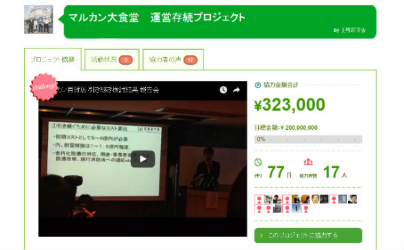 運営引き継ぎを目指す地元企業が資金を募っています。