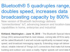Bluetoothの規格策定や利用認証を行う団体Bluetooth SIGは、最新バージョンである「Bluetooth 5」を6月16日に発表しました