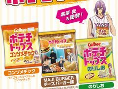 アニメ「黒子のバスケ」で紫原敦が食べているあの「ポテチトップス」を、今年もカルビーが商品化! 「MAJI BURGER チーズバーガー味」と「のりしお味」も加わったぞ。