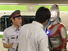 駅員さんに囲まれているウルトラマンジャック