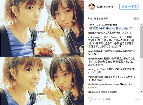 小川さんは“心友”と呼ぶ高橋さんと話し足りなかったよう。祝いの席でも高橋さんの横にピッタリ(画像は小川麻琴さんInstagramより)