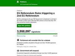 国民投票でEU離脱支持が勝利した英国で再投票求める署名が350万超 混乱続く