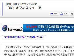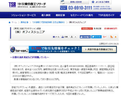 芸能事務所のオフィスジュニアが破産開始決定を受けたと、東京商工リサーチなどが伝えている。負債は約1億5000万円。