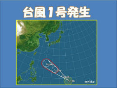 3日午前9時、カロリン諸島付近で台風1号が発生しました。
