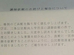 平成28年7月4日報道発表「司馬龍鳳様への講師依頼について」のお知らせ