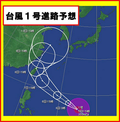 台風は1号としては7年ぶりに「非常に強い」勢力に発達すると予想されています。