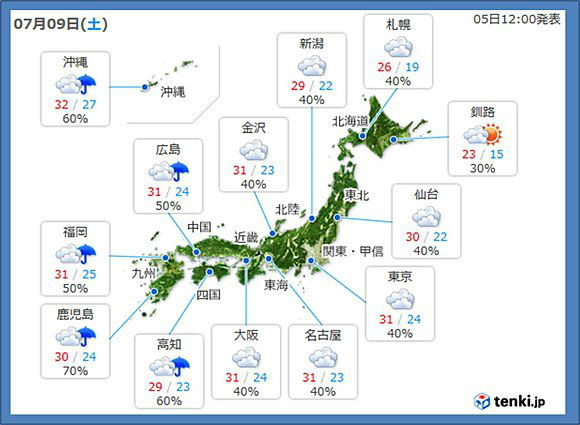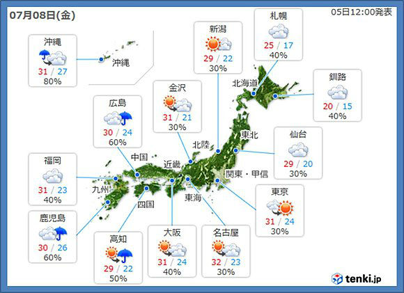 週末は、暖かく湿った空気が流れ込むため、関東から九州も大気の状態が「非常に不安定」になる恐れがあります。8日以降は、局地的に雨雲やカミナリ雲が発達するでしょう。「台風から遠く離れているから」と油断しないで、週末は天気の急な変化に、十分ご注意下さい。