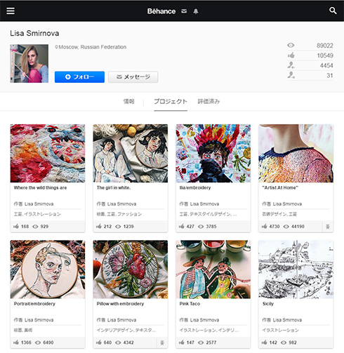 彼女のBehanceサイトでは、人物や動物の写実的な作品や抽象的な作品など刺しゅうアートのかなたに突き進む作品の数々が並んでいます。4月にはシンガポールの「K+ Curatorial Space」で個展を聞くなど、活躍の場を広げているスミルノワさん。刺しゅうアートのニューフェイスに注目が集まりそうです。