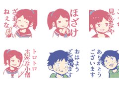 スタンプの種類は、笑い顔で「ほざけ」「こっちみんなや」などと罵倒する女の子に、泣き顔で「お安いご用です」「お疲れさまです」とビジネス向け(?)なセリフを言う男の子とさまざま。キャラクターによってセリフと表情、どちらが本音でどちらが建前なのかの印象が違うのが特徴的です。