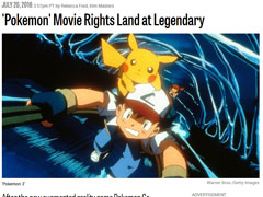 レジェンダリー・ピクチャーズがポケモンのスピンオフ作品「名探偵ピカチュウ 〜新コンビ誕生〜」の映画化権を獲得。来年から実写映画として制作すると、ハリウッド業界誌「THR(THE Hollywood REPORTER)」など複数の海外メディアが報じています。
