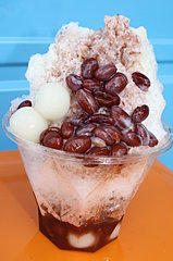 「ぜんざい」というと、温かいおしるこを想像する方もたくさんいるでしょう。何と沖縄でいう「ぜんざい」は冷たいかき氷のことだというから驚きです。黒糖で甘く煮込んだ金時豆や小豆を冷やして、かき氷にのせたものが沖縄の「ぜんざい」。黒糖の甘さが沖縄らしさを感じさせますね。