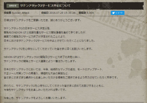 ネクソン「サドンアタック2」、日本でサービス開始前に終了