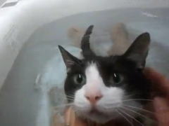 本当に猫なのか!? お風呂大好きで話題のにゃんこ動画に癒される