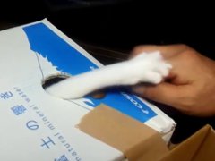 10円玉を置く音に反応して、前足を勢いよく「ズサッ!」と出す猫のたまちゃん。おもちゃの猫とは比べられないくらいの速さですが、肝心のお金は一度も取れない様子。穴がちょうど前足の太さくらいの大きさなので仕方がないのかもしれませんが、むしろよくその穴からすごい勢いで前足を出せるなと感心します。