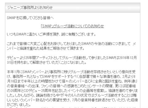 SMAPは2016年12月31日で解散し、その後は個人活動を行うと発表されている。