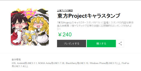 「東方Project」の公式LINEスタンプがリリースされました。40種で240円となっています。