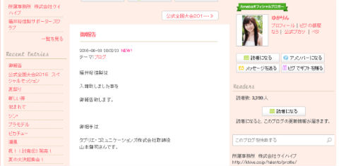 声優の福井裕佳梨さんが8月28日、結婚を自身のブログで報告した。相手はコスプレ衣装などを扱うコスパの関連会社タブリエ・コミュニケーションズの取締役、山本健司さん。
