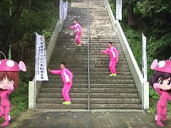 胸に大洗女子学園の校章、背中にはアンコウマークがプリントされたピンクのジャージーを着用した稲田選手は、公園・アウトレット・魚忠・肴屋本店・神社・大洗駅など、見覚えのある風景の前で「あんこう踊り」を披露していきます。その動きはキレッキレで「さすがスポーツマン!」という感じ。
