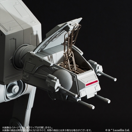 この「スター・ウォーズ AT-ATマルチスタンド」はペン立て、貯金箱、クリップケース、マスキングテープケース、ネーム印ケース、ケーブルホルダーと多数の機能を搭載。机の上のさまざまなものを収納できます。ケーブルホルダーとして使う場合は脚部のフックにコードを巻き付けます、付属品の1/72「スノースピーダー」を使えば、「エピソード5/帝国の逆襲」でAT-ATの脚にケーブルを絡めて転倒させるあのシーンが再現可能です。