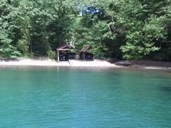 動画はドローンで入江周辺を空撮したもの。視点が入江の奥へ進んでいくと、浜辺には2件の小屋が。動画のタイトルが語るように、映画「紅の豚」に登場する、主人公ポルコの隠れ家を彷彿(ほうふつ)とさせます。