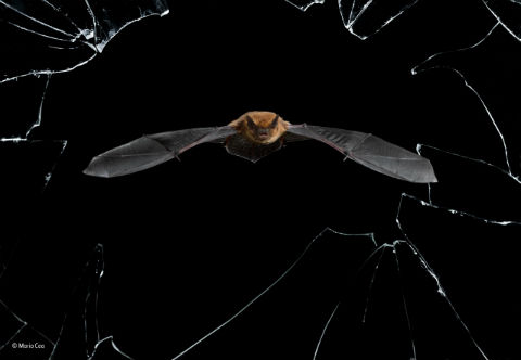 割れた窓から飛び出すヨーロッパアブラコウモリ 「Crystal precision」(C)Mario Cea / Wildlife Photographer of the Year