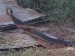 動画は在野の研究者、Dawn Kelly氏からもたらされたもの。ヘビたちが身体を立てて互いに威かくし、からみ合って戦う様が写されています。威かく行動の様子から、メスを取り合うオス同士の戦いではと、David Steen氏は推測しています。なんだその種を超えた三角関係。
