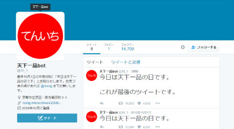 毎年「天下一品の日」にだけツイートする「天下一品bot」、今年で終了