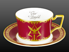 「もしシャアに自分だけの午後のひとときがあったら?」をイメージし、両社がデザインしたティーカップとソーサーのセット。カップにはシャアのエンブレムを中心にすえ、白地をディープレッドとゴールドで塗り分け。内側にはシャアのサインが記されています。