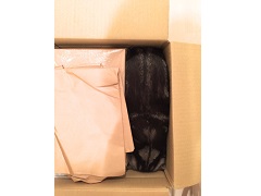 荷物の入ったダンボールの隙間をきれいにピッタリと埋めていて、真上からみると顔と尻尾も見えないため、まるでモフモフの毛布のよう。柔らかいはずなので、緩衝材にはぴったりかもしれません。