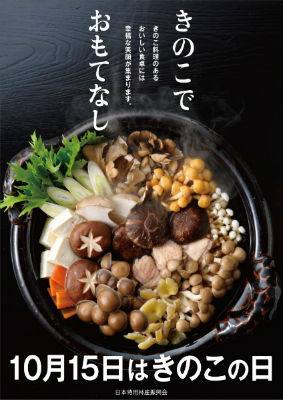 きのこの日は、日本特用林産振興会がきのこの消費拡大・生産振興、きのこに対する正しい知識の普及などを推進するために制定。10月はきのこが最も多く取り扱われ、天然のきのこも多く採れる月であることや、15日は月の中日で慌ただしくなく消費者にアピールするのに適しているといった理由からきのこの日として定められました。